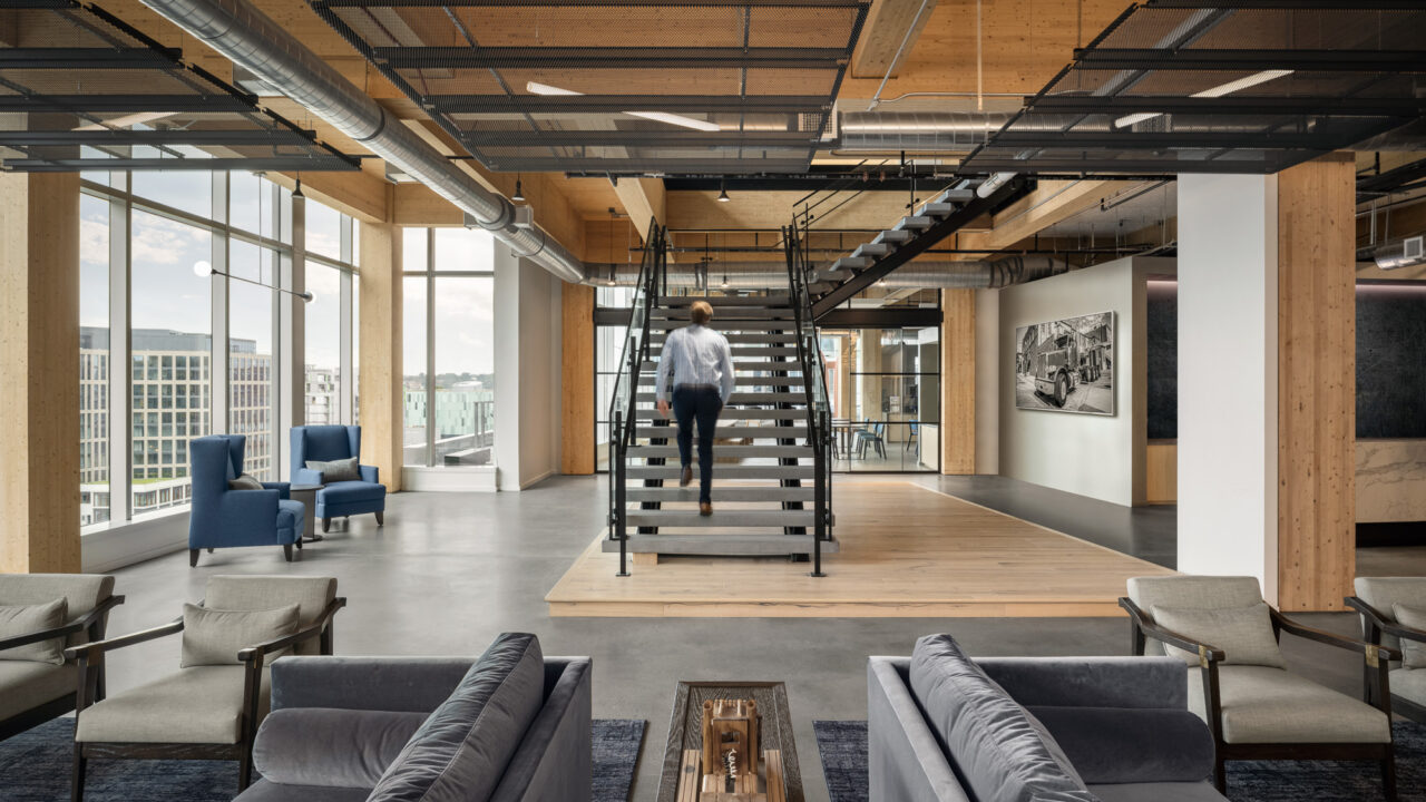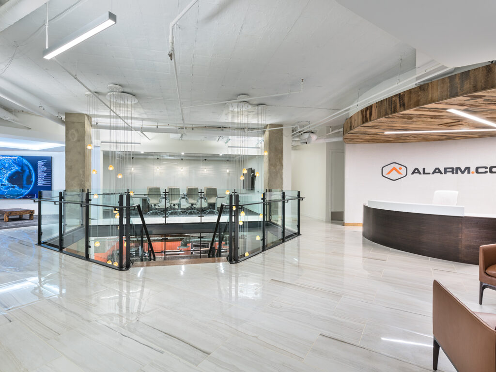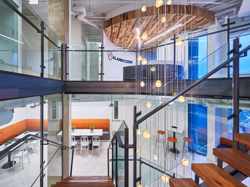 Global technology company, Alarm.com, sought to create a new headquarters that would represent their energetic culture and commitment to excellence. The project encompassed seven floors with multiple phases for build-out and furniture installation, requiring all project partners to communicate regularly and effectively. The Price Modern team worked diligently throughout the two-year duration to complete this impressive project, collaborating closely with Alarm.com and OTJ Architects to ensure the design intent was realized.