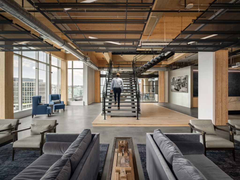 After spending almost 40 years outside of Washington, DC, the American Trucking Associations (ATA) determined the nation’s capital would be the best place for the organization’s next chapter. Selecting the city’s first mass timber office building for its new headquarters, ATA’s goal focused on creating a welcoming environment for members and decision-makers, along with creating a modern working environment for staff. Price Modern was enlisted by ATA and OTJ Architects to assist with the furniture specification, procurement, and installation for the new 60,000 SF space spanning one and a half floors.