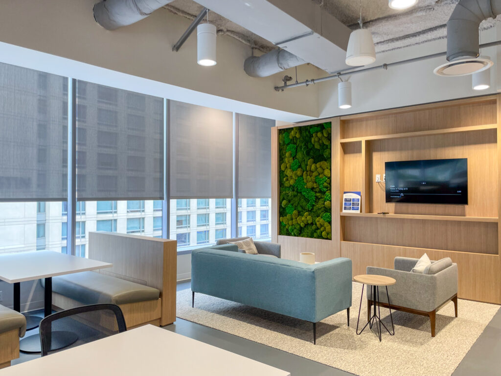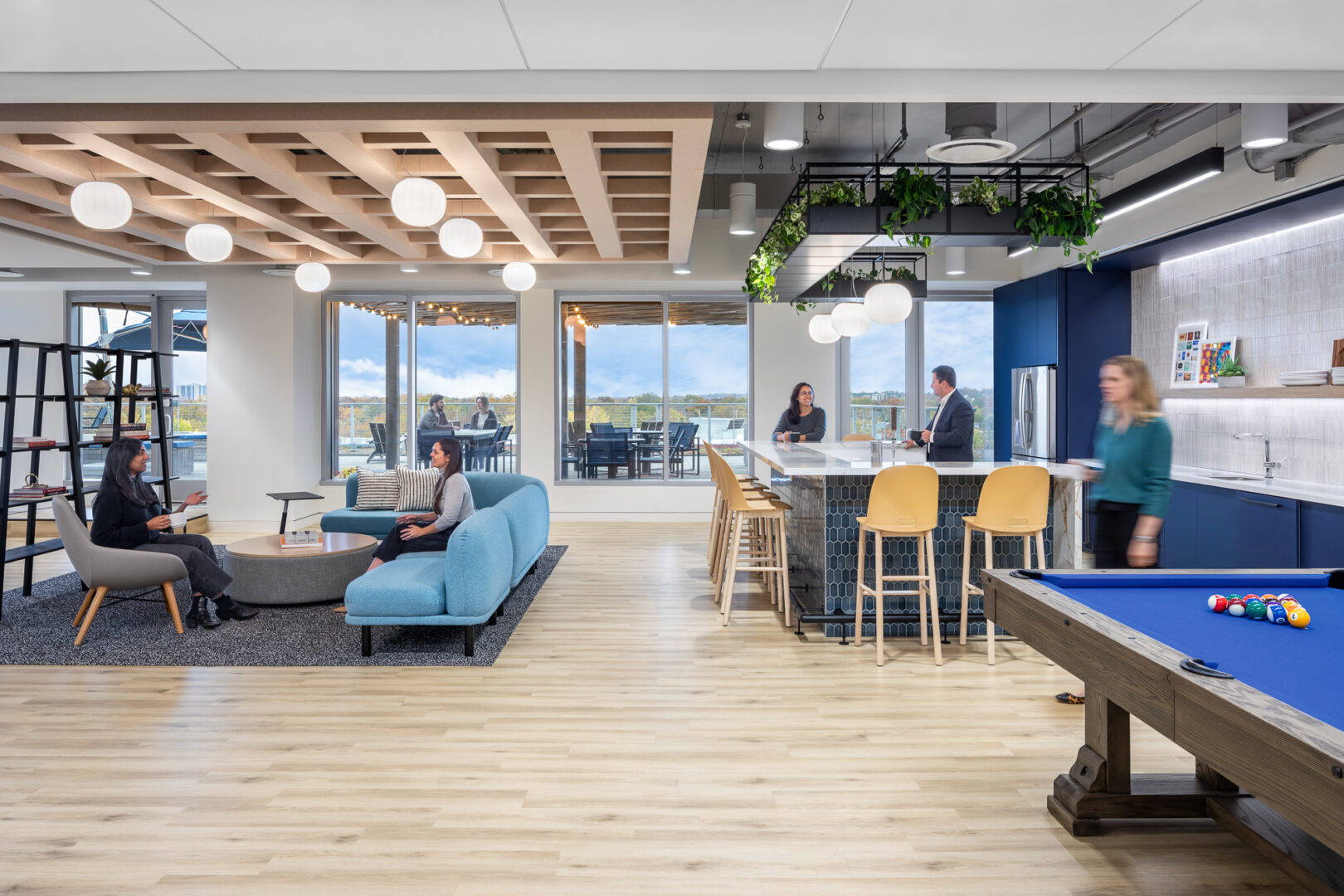 Cadmus Group sought to create a dynamic and collaborative workspace that prioritized well-being and engagement. Price Modern partnered closely with Cadmus and shape on the design of the new Arlington office that blended new and reused furniture to maintain sustainability and budget efficiency. The space features a contemporary reception area, a central hub with a café, an outdoor terrace, and versatile work zones that promote productivity and interaction.