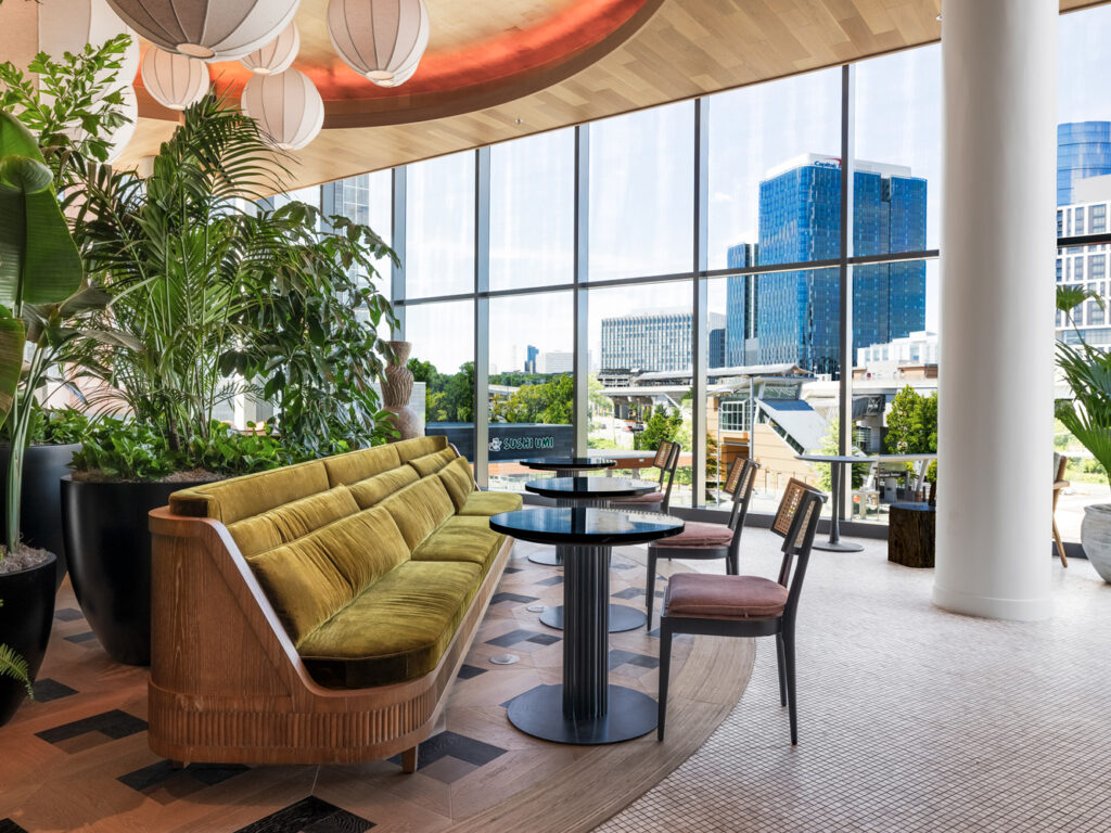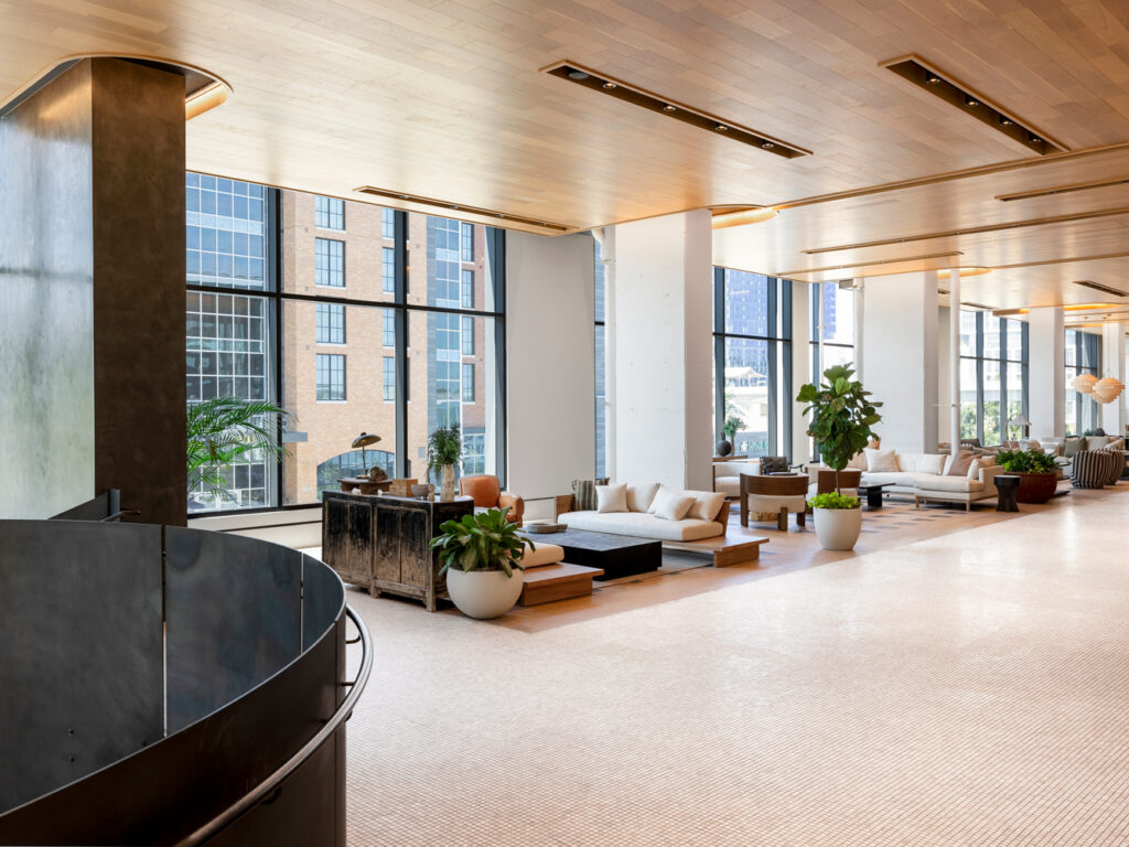 Designed as part of the 6.5 million-square-foot Scotts Run development, the Heming is a new luxury residential tower with over 23,000 square feet of amenity spaces. Skanska and Streetsense envisioned a space that would create a balance between city life and relaxation for residents with a smooth transition between the indoors and outdoors.