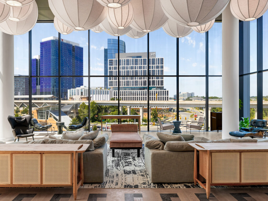 Price Modern’s dedicated Public Spaces Studio partnered closely with Skanska and Streetsense to specify furniture solutions that would invite residents to unwind in one of the many amenity spaces. Our team provided expert recommendations that would bring the design vision to life and coordinated all shop drawings and finish selections, delivery and installation scheduling, and ensured the final punch list was completed to the highest standards. Residents are now enticed to spend time in one of several lounge areas, co-working spaces, a game room, and tranquil pool deck