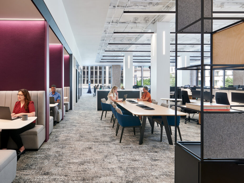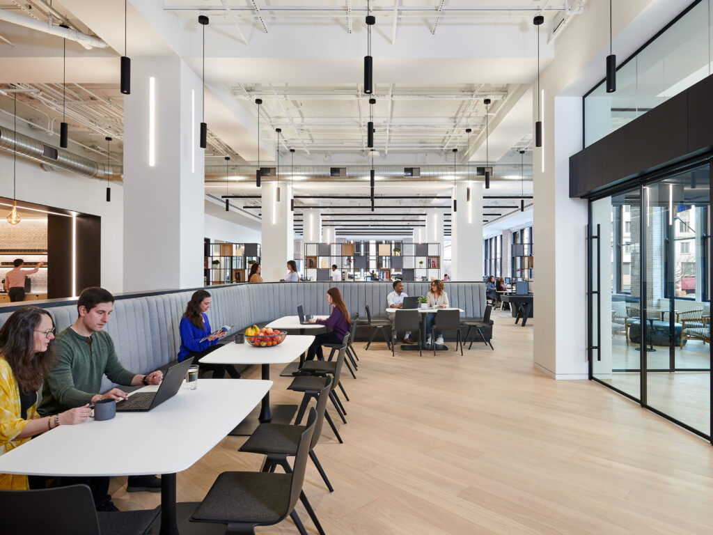 office—breakout spaces, open-plan workspace, communal areas,