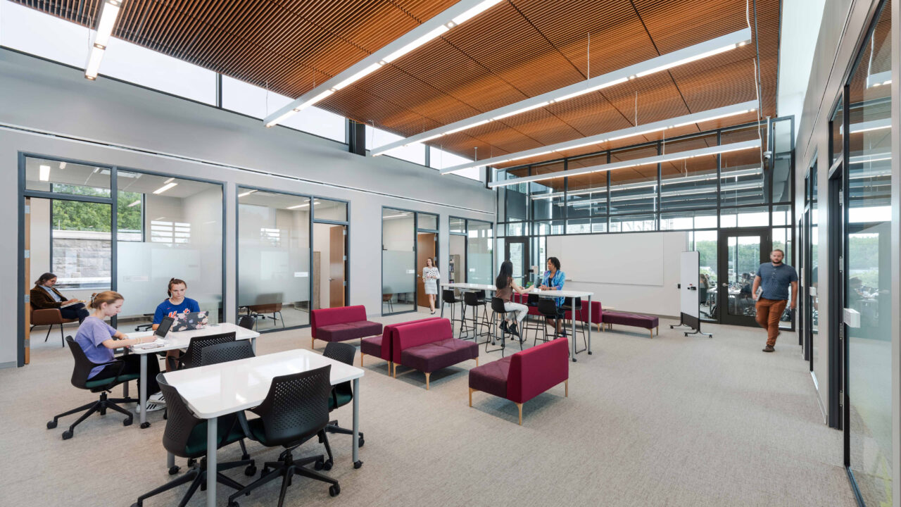 Once home to the Newseum, this prominent building found new purpose as JHU’s Bloomberg Center to house the School of Advanced International Studies, the Carey Business School, the Krieger School of Arts and Sciences, Peabody Institute, and the newly established School of Government and Policy. With over 3,000 students, staff, and guests coming through the building each day, it was imperative for the new space to be a collaborative learning and working environment.