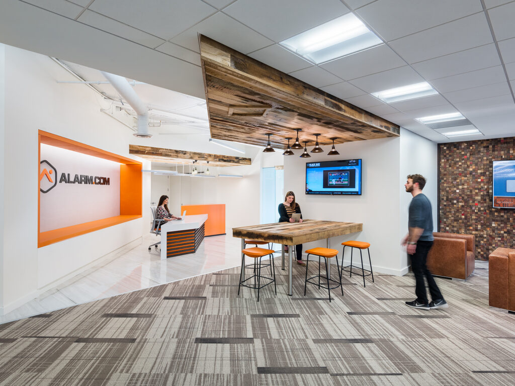 Our team participated in design development sessions to assist in selecting furniture solutions that would best serve the needs of Alarm.com’s staff and visitors. The furniture package included solutions for workstations, single and double private offices, multiple pantries, conference and training rooms of various sizes, intimate huddle rooms, and a plethora of unique lounge and collaborative areas throughout every floor. The Price Modern team delivered this complex project flawlessly and to Alarm.com’s complete satisfaction. We continue to support Alarm. com post occupancy as their needs evolve