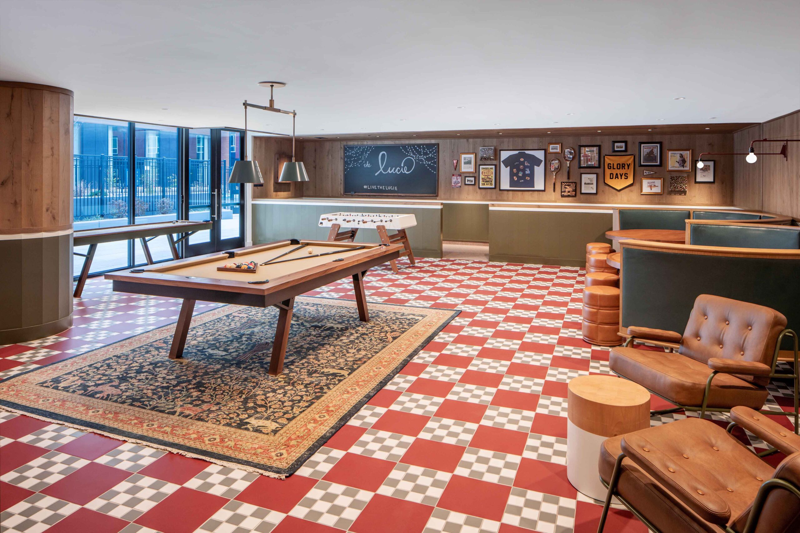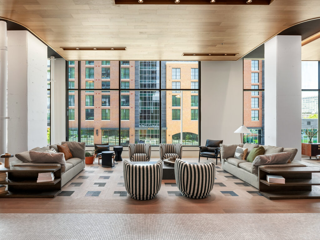 Price Modern’s dedicated Public Spaces Studio partnered closely with Skanska and Streetsense to specify furniture solutions that would invite residents to unwind in one of the many amenity spaces. Our team provided expert recommendations that would bring the design vision to life and coordinated all shop drawings and finish selections, delivery and installation scheduling, and ensured the final punch list was completed to the highest standards. Residents are now enticed to spend time in one of several lounge areas, co-working spaces, a game room, and tranquil pool deck