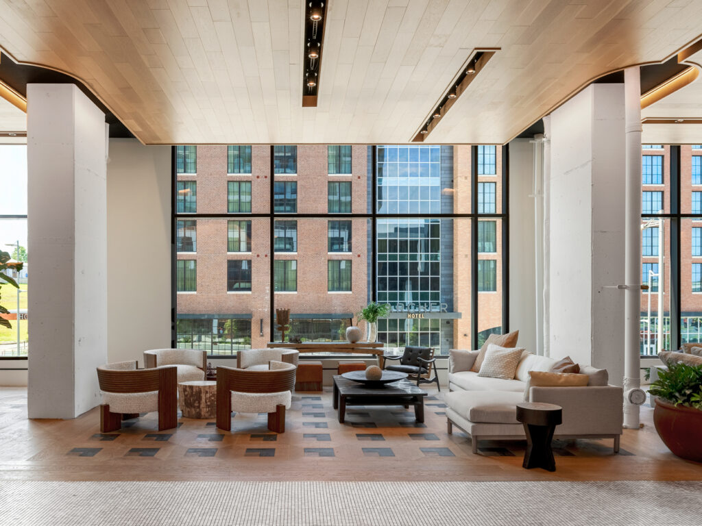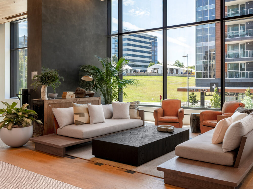 Designed as part of the 6.5 million-square-foot Scotts Run development, the Heming is a new luxury residential tower with over 23,000 square feet of amenity spaces. Skanska and Streetsense envisioned a space that would create a balance between city life and relaxation for residents with a smooth transition between the indoors and outdoors.