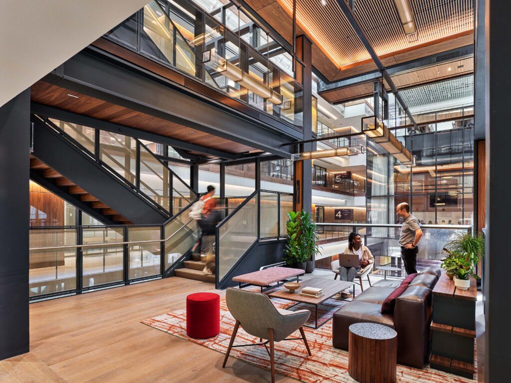 Our team partnered closely with Rockwell Group to specify ancillary furniture solutions for the expansive 10-floor building, working with over 50 furniture, fabric, and leather manufacturers. We also provided over 10 area rugs with the help of Price Modern’s dedicated flooring