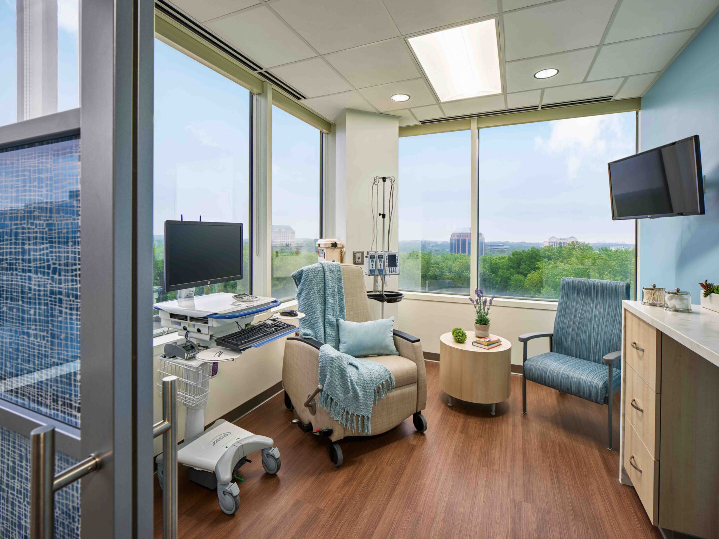 Price Modern partnered closely with Wilmot Sanz and Clark Construction to coordinate the complex logistics of the project, developing a furniture package that fosters a calming environment for both staff and patients. The team provided solutions for patient rooms, waiting areas, exam rooms, infusion bays, administrative areas, and more across the nine-floor building. Throughout the process, Price Modern maintained open communication with the entire Inova project team to ensure smooth execution and deliver a truly welcoming space. This project was honored with the ENR Mid-Atlantic Best Project Award (Healthcare).